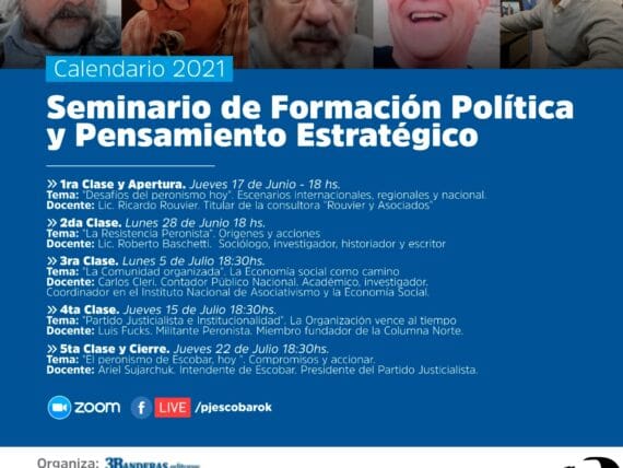 Constará de cinco clases con destacados docentes de importante trayectoria académica y militante. La apertura estará a cargo del reconocido consultor político Ricardo Rouvier y el cierre lo realizará el Intendente de Escobar en su rol de Presidente del PJ.